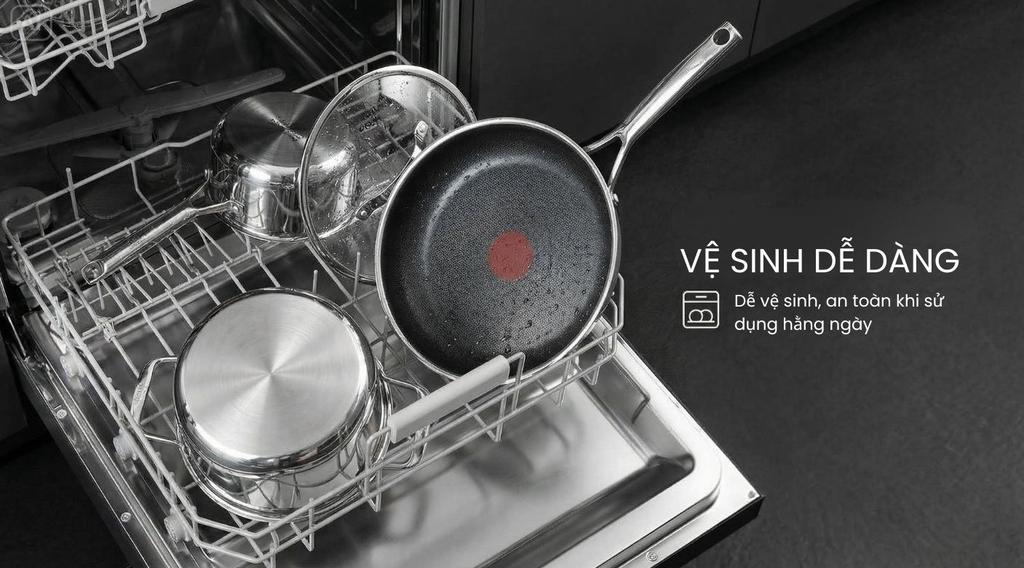 Tay cầm tinh tế nhẹ nhàng chắc tay, cho cảm giác cầm nắm an toàn; vạch đo dung tích in trong lòng nồi giúp ước lượng nước/muối/mì nhanh chóng. Toàn bộ bề mặt tối ưu cho vệ sinh nhanh và dùng được máy rửa chén – tiết kiệm thời gian dọn dẹp.