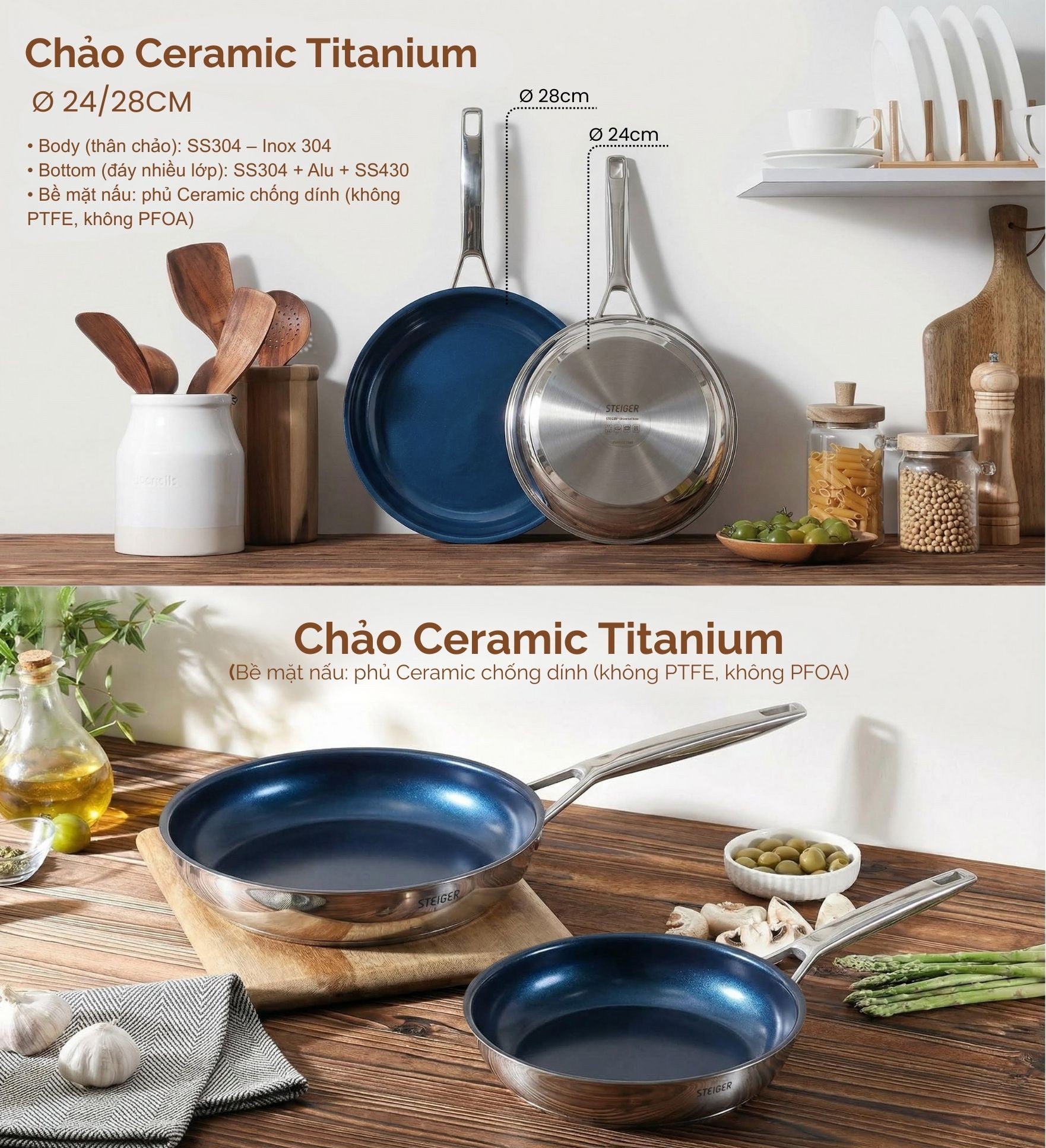 Bộ Nồi Steiger Diamond – Set 7 Món Đa Dụng Cho Mọi Gian Bếp