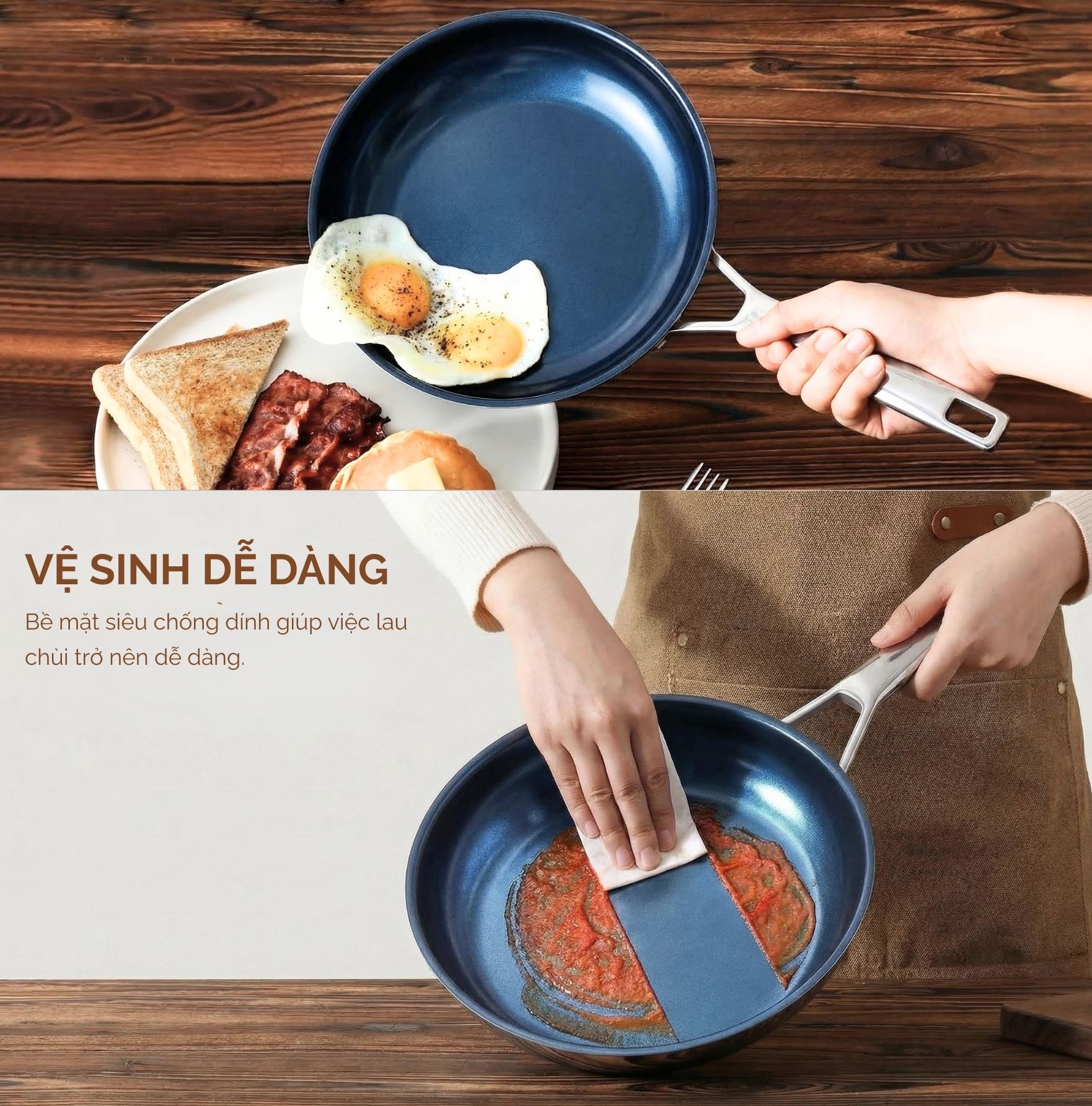 Tay cầm tinh tế nhẹ nhàng chắc tay, cho cảm giác cầm nắm an toàn; vạch đo dung tích in trong lòng nồi giúp ước lượng nước/muối/mì nhanh chóng. Toàn bộ bề mặt tối ưu cho vệ sinh nhanh và dùng được máy rửa chén – tiết kiệm thời gian dọn dẹp.