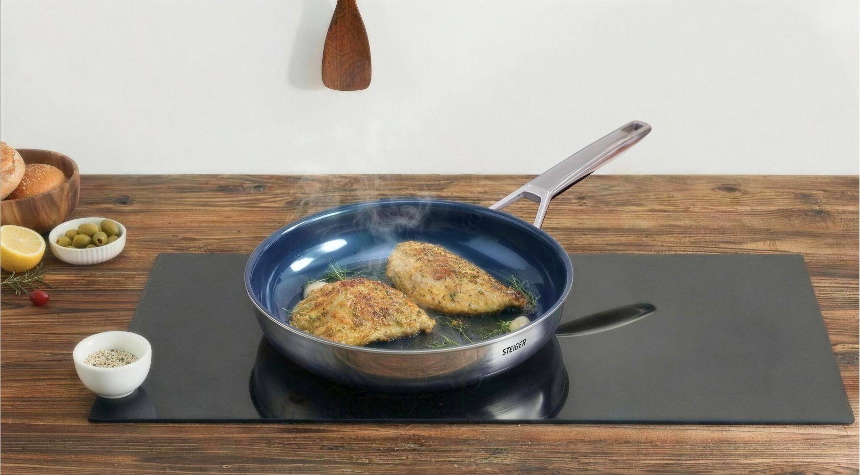 Steiger Diamond 7 món là set nồi “all-in-one” cho gia đình hiện đại: từ nấu canh, kho/hầm đến hấp bánh bao, hấp rau – mọi nhu cầu nấu nướng hằng ngày đều gói gọn trong một bộ. Bộ nồi chịu nhiệt đến 230°C, có thể chuyển thẳng từ bếp lên lò nướng để hoàn thiện món ăn.