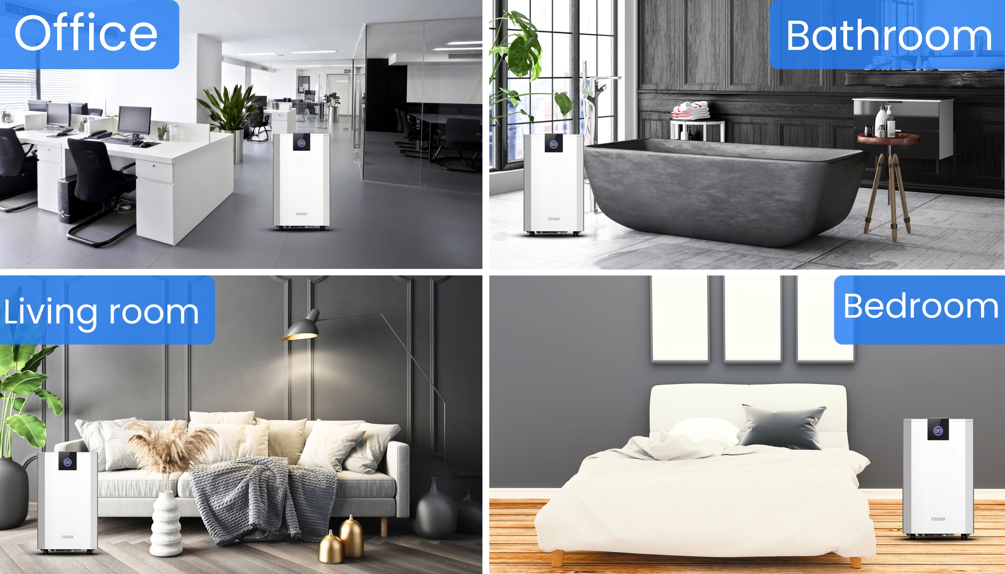 Máy hút ẩm Steiger STG - BW 55L là dòng máy hút ẩm hiện đại, với thiết kế tối giản và khả năng hút ẩm mạnh mẽ. Theo đó máy sở hữu công suất hoạt động lên đến 665W. Nhờ công dụng tuyệt vời này mà máy có thể mang lại không khí trong lành. Giúp bạn tạm biệt nỗi lo sợ với mùi ẩm mốc trong nhà, làm cho quần áo và chăn gối ẩm mốc, tạo mùi khó chịu.